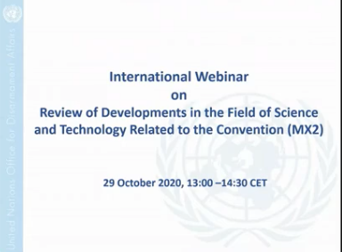 瑞士日内瓦时间2020年10月29日下午1点(北京时间2020年10月29日晚8点),联合国《禁止生物武器公约》通过网络视频召开2020年科学与技术发展专家组会议(MX2)。天津大学法学院副教授、生物安全战略研究中心薛杨研究员受邀参会并做专题发言,就生物科学家行为准则的重要性和具体内容,以及中国政府和科学家在该领域的最新积极努力进行了介绍。