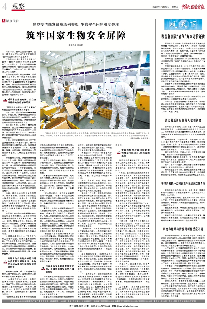 中国积极参与国际社会生物安全风险应对,体现大国担当