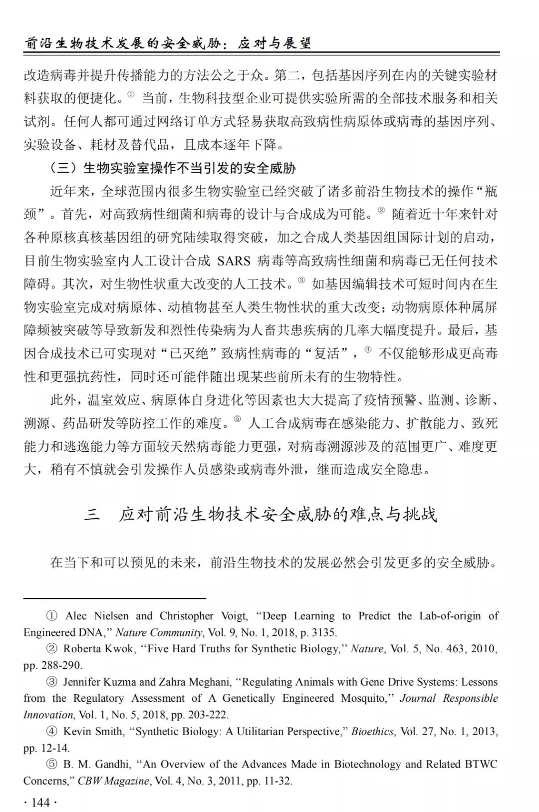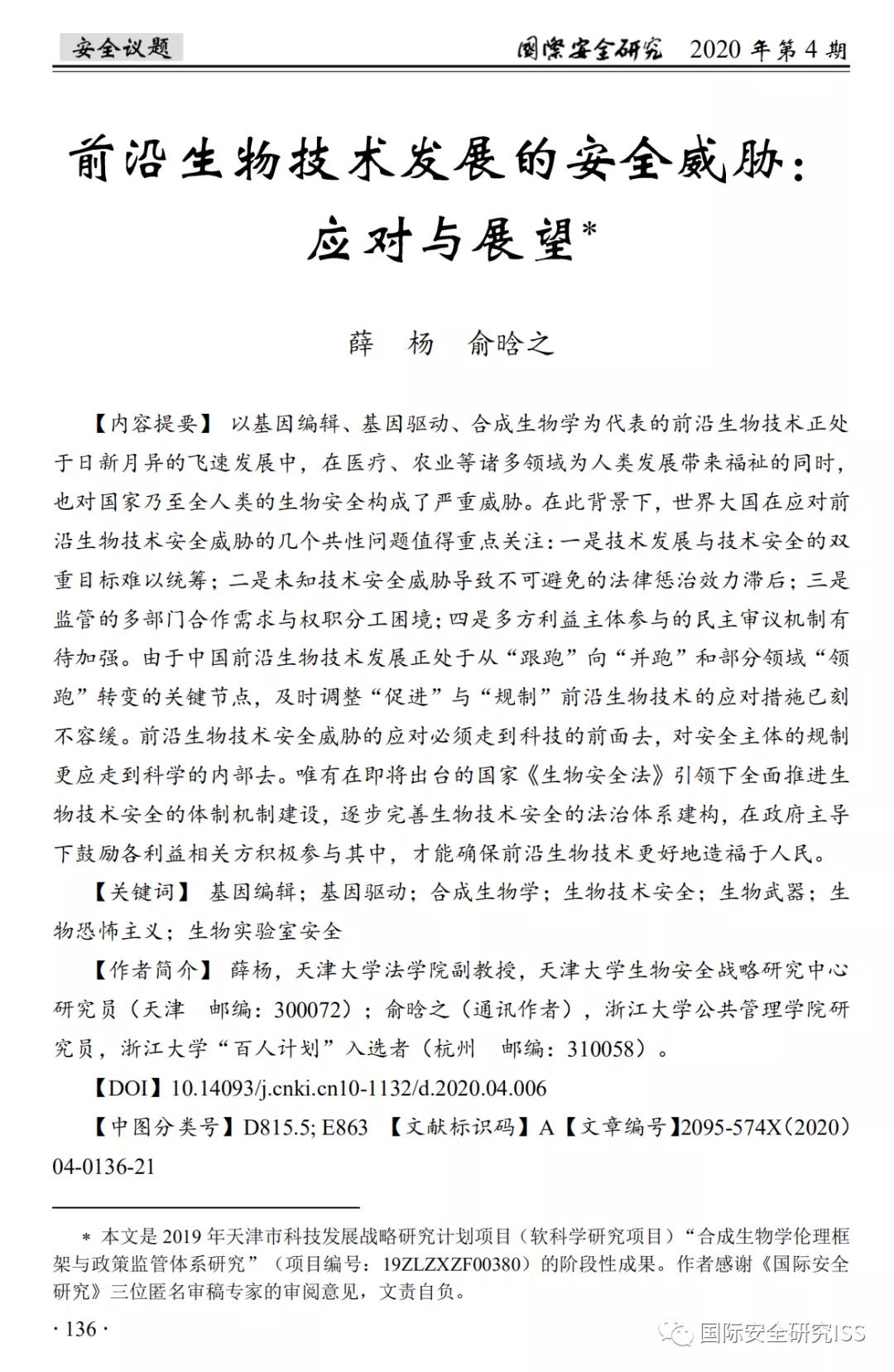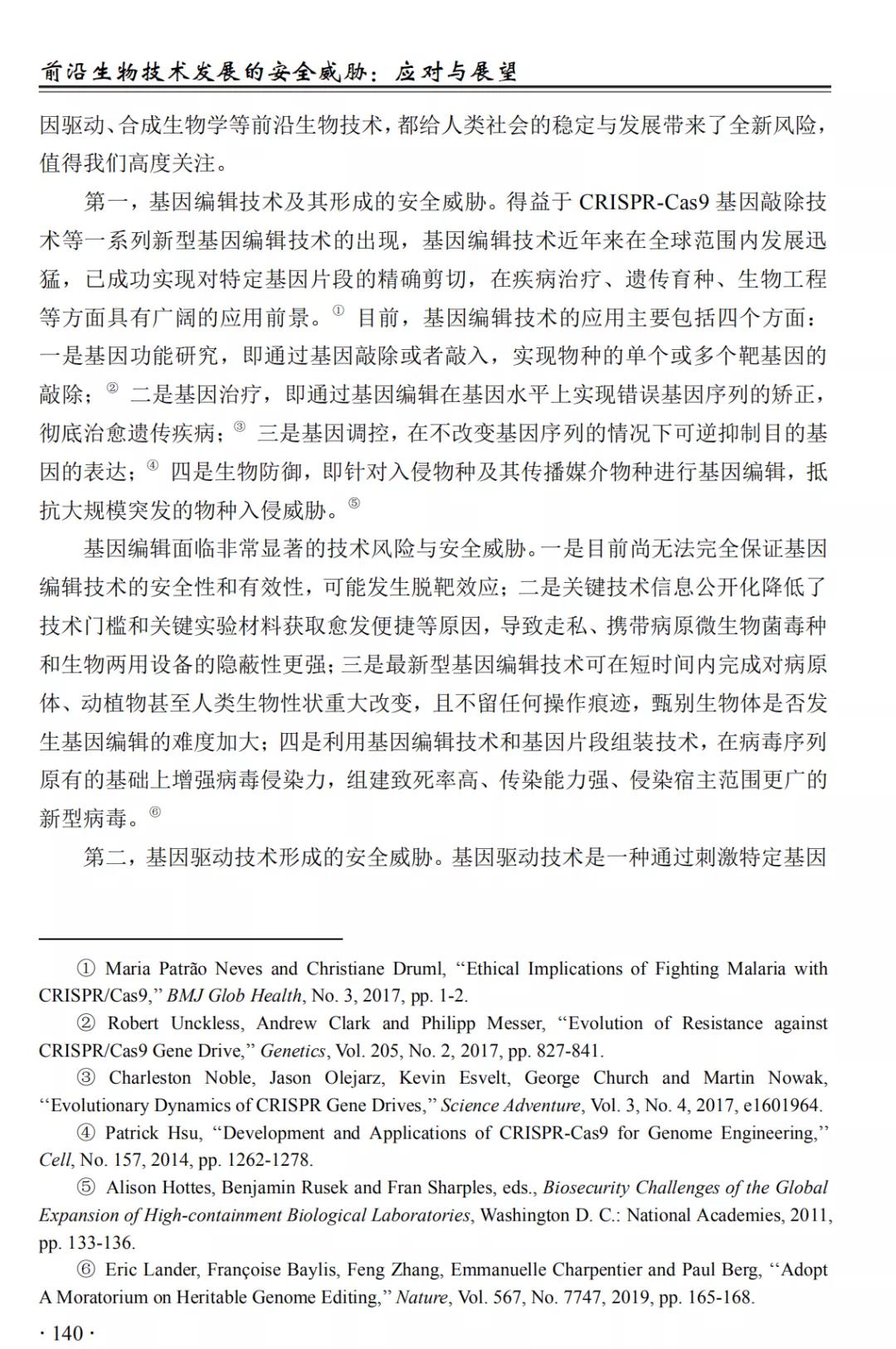 【关键词】 基因编辑;基因驱动;合成生物学;生物技术安全;生物武器;生物恐怖主义;生物实验室安全