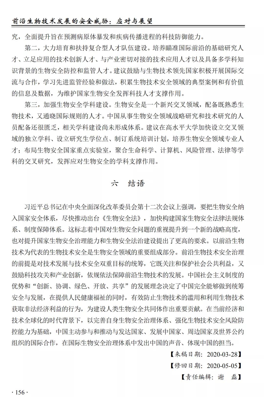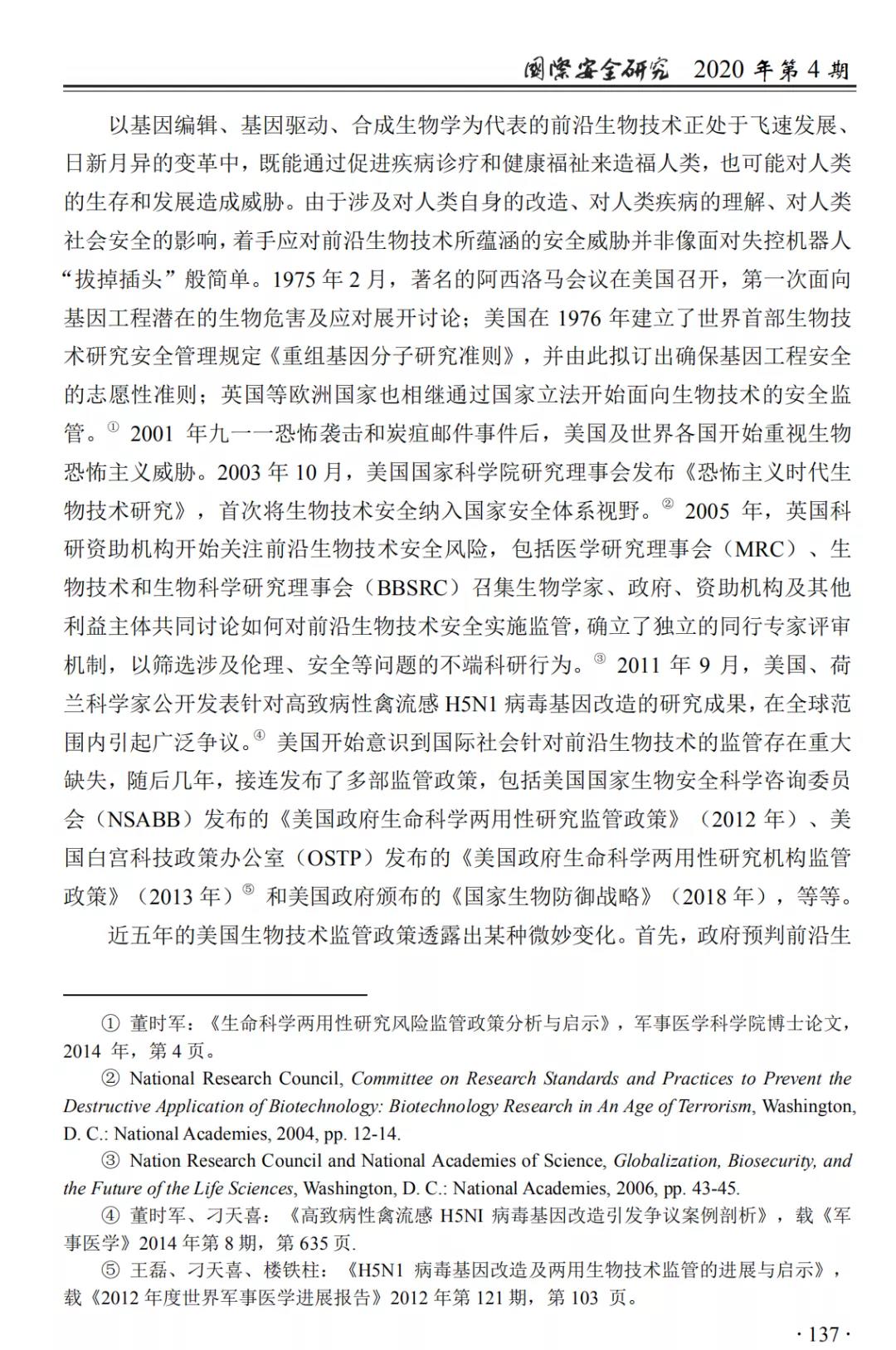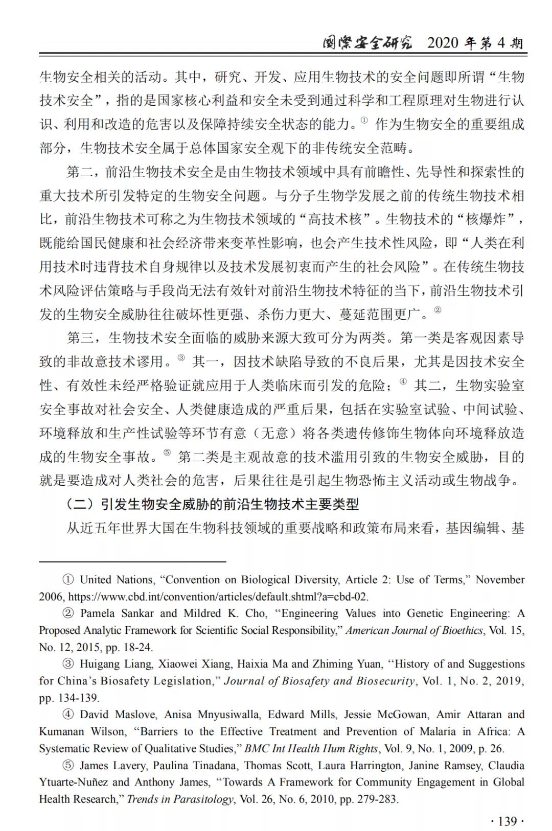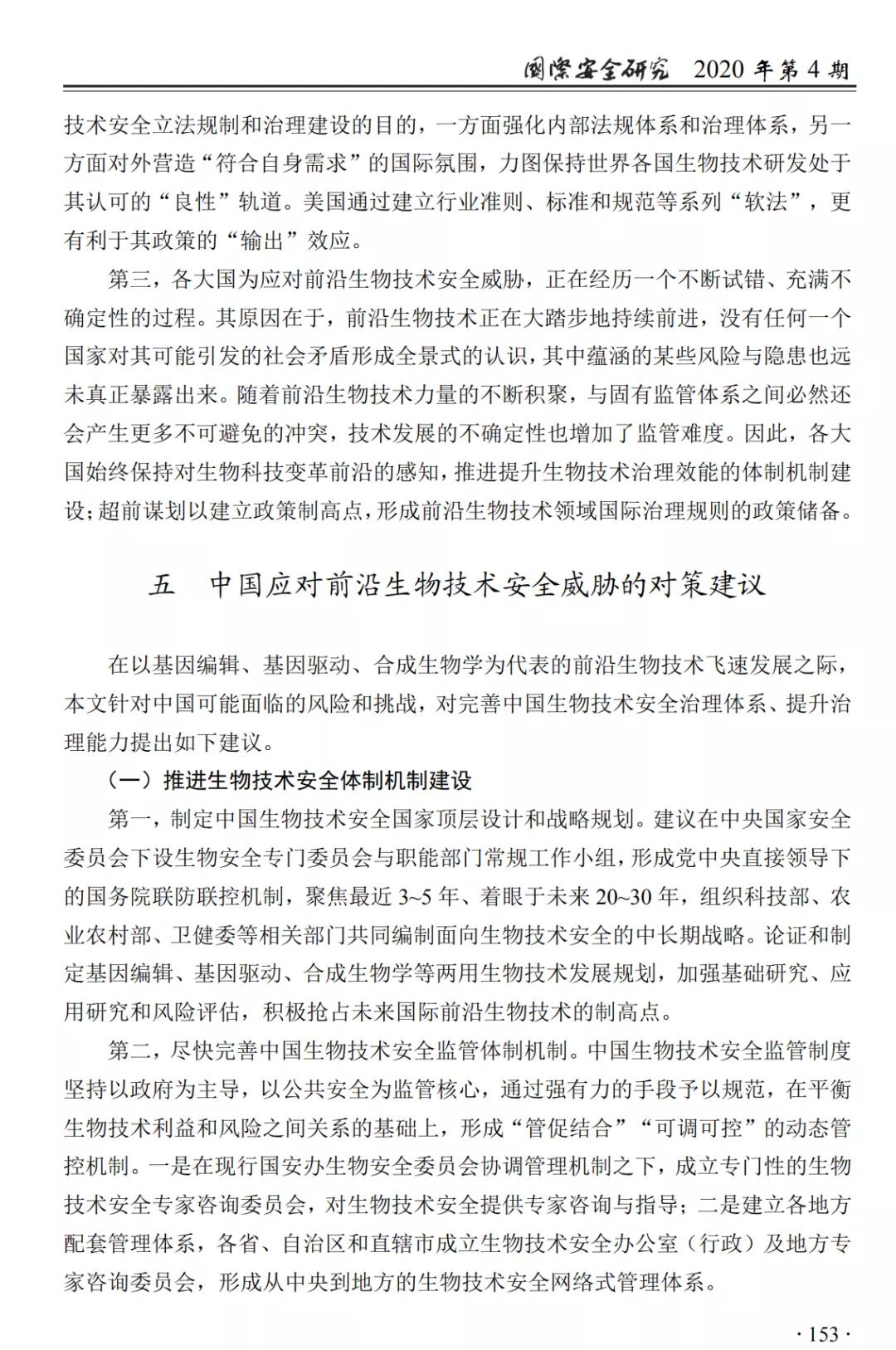 【关键词】 基因编辑;基因驱动;合成生物学;生物技术安全;生物武器;生物恐怖主义;生物实验室安全