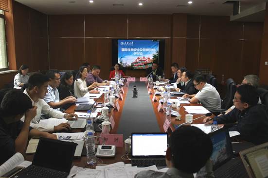 专家讨论阶段,中国军控与裁军协会秘书长杨翊女士、中国科学技术信息研究所朱礼军研究员、中国人民解放军陆军防化学院生物防护系于孟斌副主任、国务院发展研究中心国际技术经济研究所肖尧副主任及刘发鹏同志、中国科学院武汉文献情报中心梁惠刚副研究员、中国人民大学法学院邵沙平教授,以及天津大学法学院薛杨博士及董妍副教授、智能与计算机学部王文俊教授、生物安全战略中心张卫文教授、生命科学学院王涛教授及黄金海教授、理学院高峰教授等先后发言,对生物安全的国际现状以及中国的战略提出了各自独到的见解。