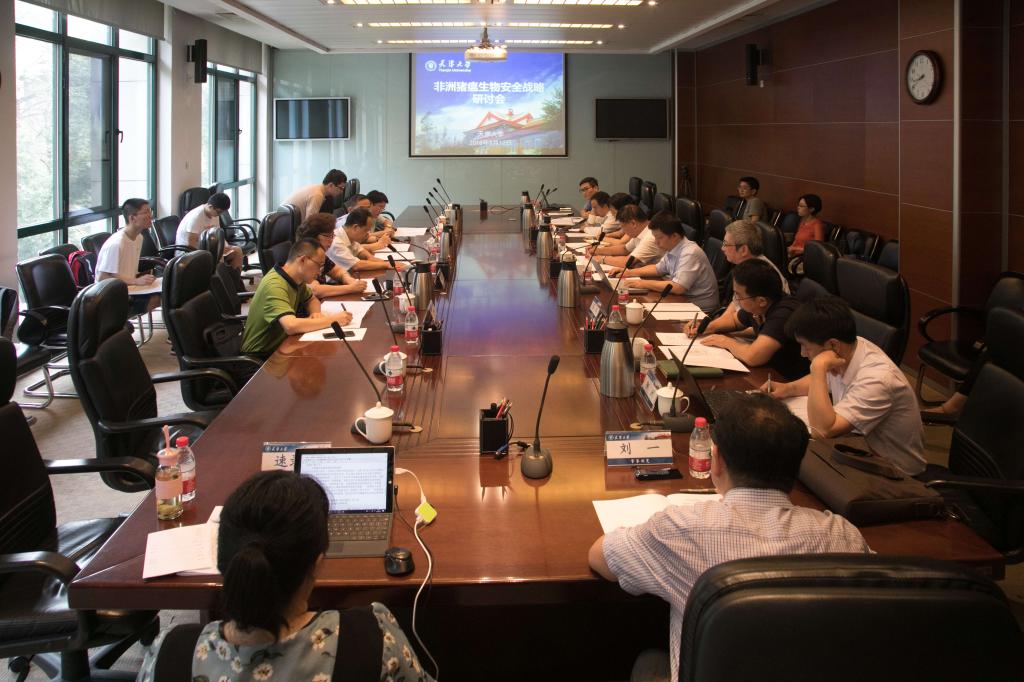 (通讯员 刘俊卿 摄影 郭程)中国农业农村部8月3日发布疫情信息,辽宁省沈阳市沈北新区发生一起非洲猪瘟疫情。据了解,这是中国首次发生非洲猪瘟疫情。疫情发生后我校生物安全战略研究中心快速反应,组织团队开展风险对策研究。为进一步研讨非洲猪瘟疫情可能给我国带来的风险及应对措施,8月12日,我校召开非洲猪瘟生物安全战略研讨会。天津海关(原出入境检验检疫局)副局长冯斌,哈尔滨兽医研究所猪传染病研究室主任仇华吉,天津海关动物植物与食品检测中心副主任董志珍,哈尔滨兽医研究所研究员赵东明,天津海关动植物与食品检测中心病毒学专家王乃福,天津大学副校长元英进出席了会议,天津大学人文社科处、化工学院、生命学院、法学院、计算机学院、马克思主义学院的相关师生参加会议,会议由天津大学社科处处长、文科办主任张俊艳主持。