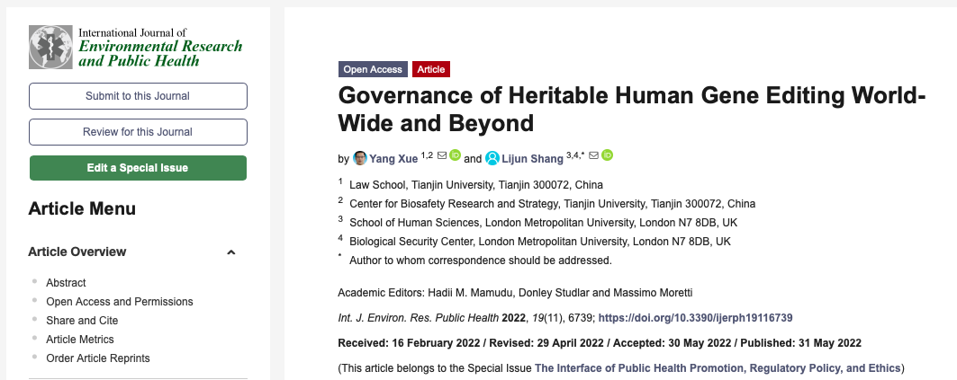 近期,天津大学生物安全战略研究中心研究员薛杨(Yang Xue)以第一作者身份在国际高水平期刊陆续发表生物安全法治系列文章。